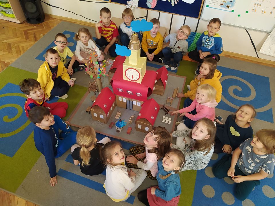 Ratusz można obejrzeć przed wejściem do przedszkola.