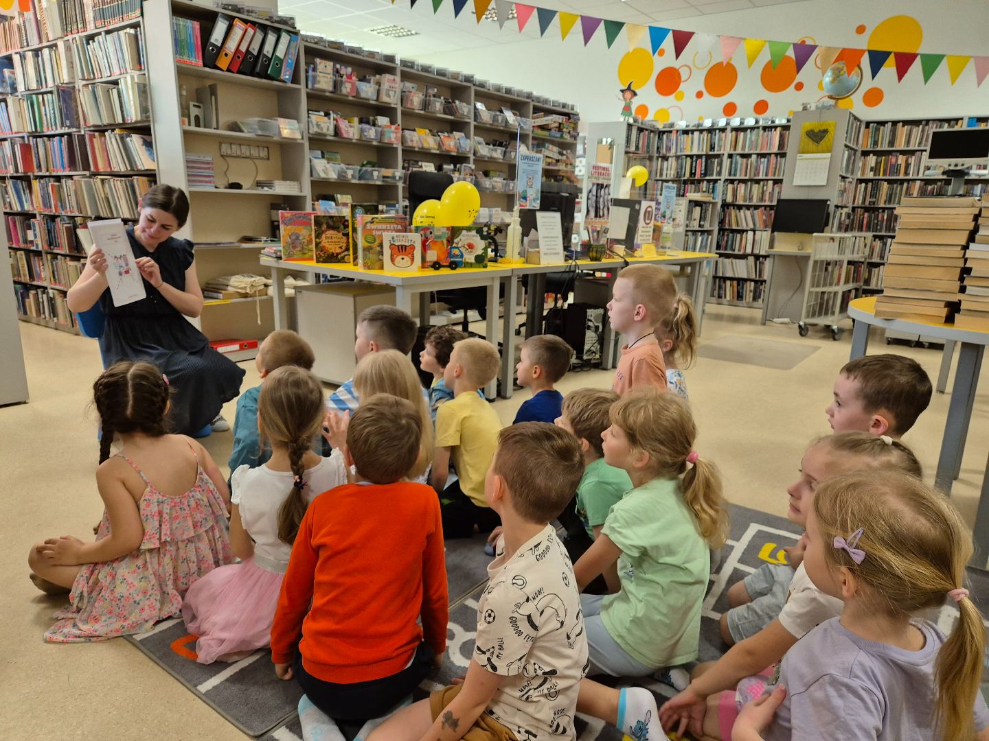 W piątek 21 lutego odwiedziliśmy Książnicę Podlaską Filię nr 15. Podczas wizyty zapoznaliśmy się z magicznym światek książek oraz dowiedzieliśmy się jak działa biblioteka i w jaki sposób można wypożyczyć książki. Wysłuchaliśmy też bajki czytanej przez panią bibliotekarkę oraz oglądaliśmy kolorowe książki.