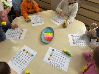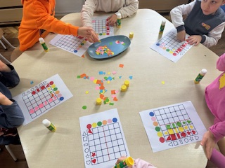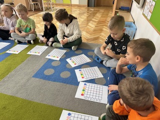 "Kodowanie" to metoda edukacyjna, która rozwija logiczne i algorytmiczne myślenie u dzieci w wieku przedszkolnym i wczesnoszkolnym po przez zabawę bez użycia komputera. Polega na wykorzystaniu prostych materiałów, takich jak maty i kolorowe kubki czy klocki, do tworzenia wzorów na podstawie słownych instrukcji,