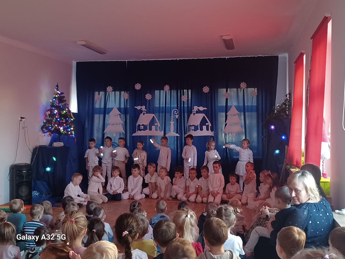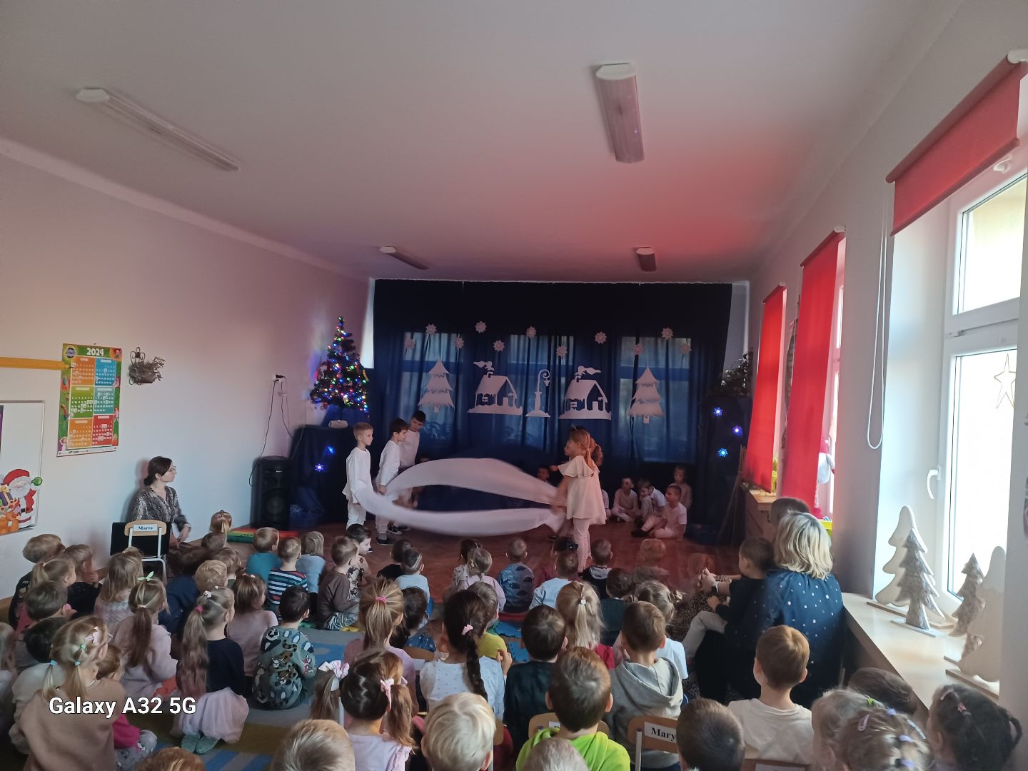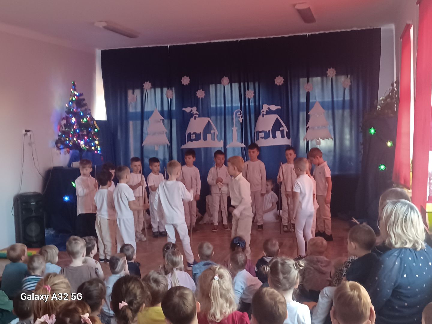 13.12.2024 r. najstarsza grupa w przedszkolu - KANGURKI - zaprezentowała wszystkim dzieciom z naszego przedszkola ,,Świąteczne przedstawienie". Były świąteczne wiersze, piosenki, instrumentacje i tańce :)